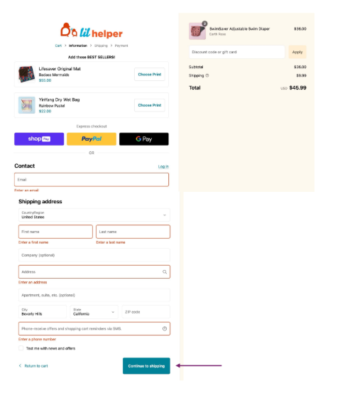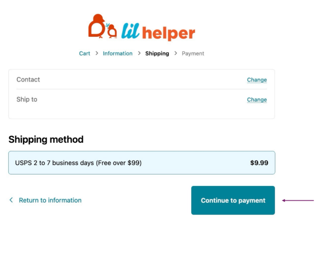 Enter your shipping information, and click “Continue to Shipping”