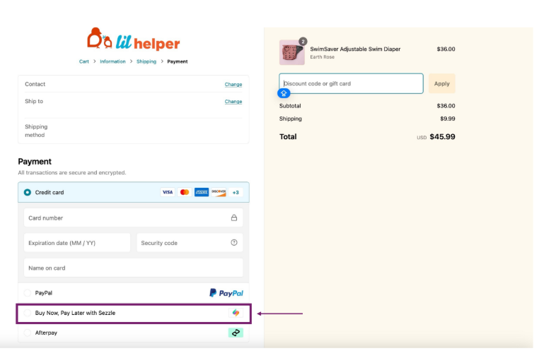 Here, you will see several options including PayPal and Credit Card. Select the option “Buy Now, Pay Later with Sezzle”. Click “Pay Now” - you will be redirected to complete your purchase securely through Sezzle.